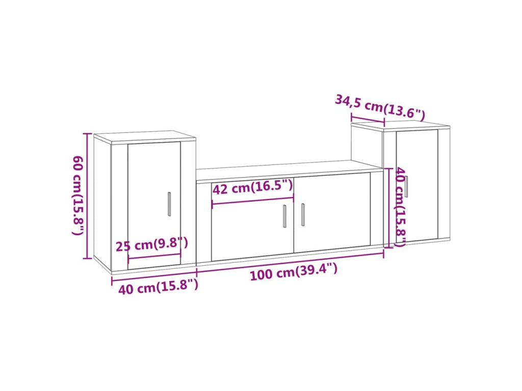 - 1 x TV skrinka: 100 x 34,5 x 40 cm (D x Š x V)