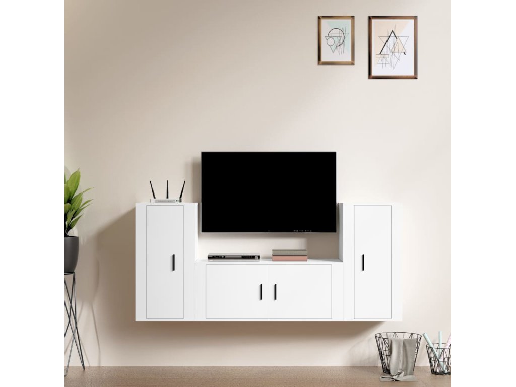 vidaXL 3-dielna súprava TV skriniek biela spracované drevo