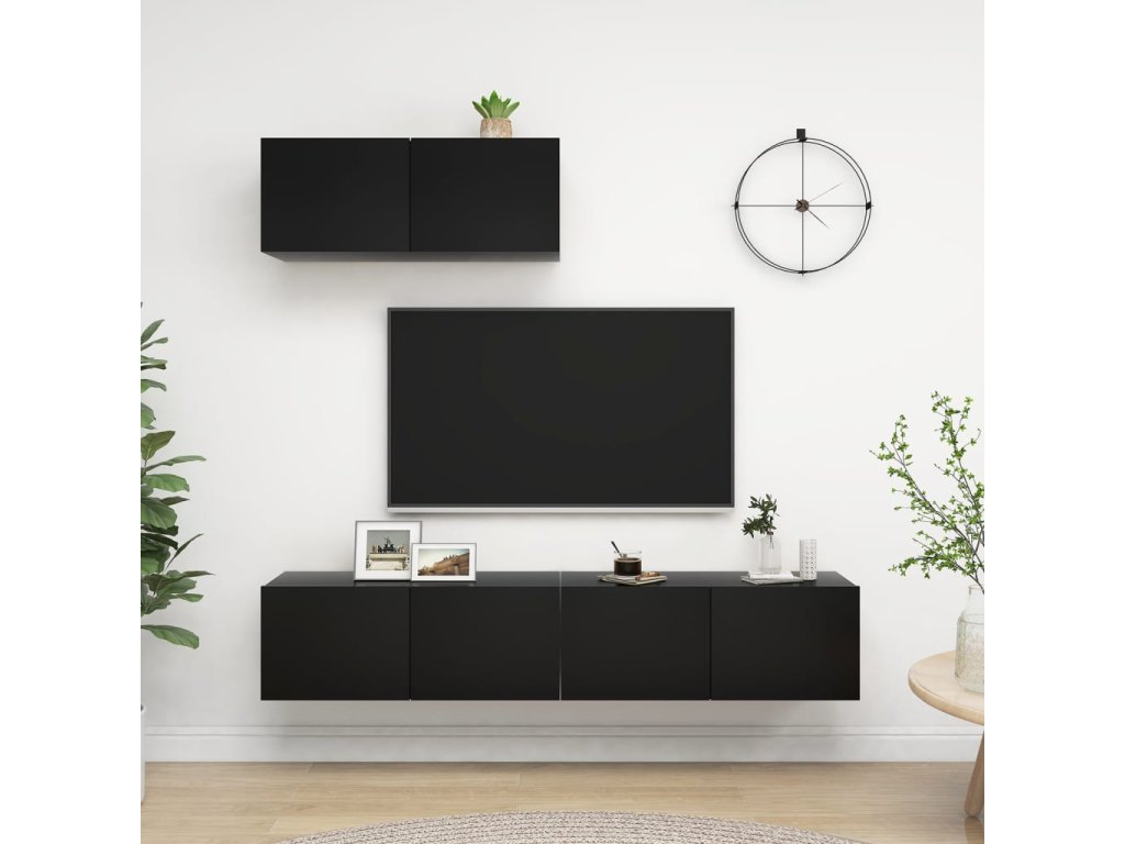 Táto sada závesných TV skriniek je vybavená veľkým úložným priestorom na uloženie rôznych predmetov a vo vašej domácnosti bude praktickým a pútavým doplnkom.