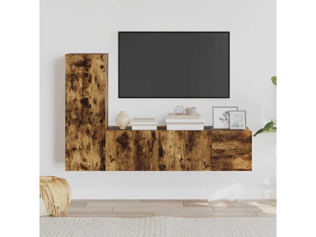 vidaXL 3-dielna súprava TV skriniek dymový dub spracované drevo