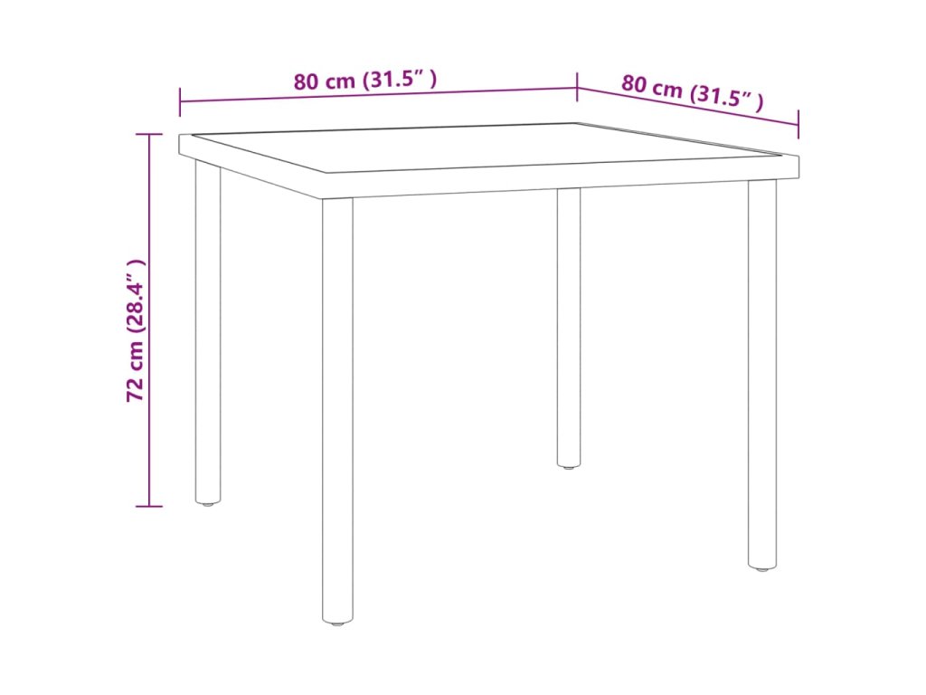 - Rozmery stola: 80 x 80 x 72 cm (D x Š x V)