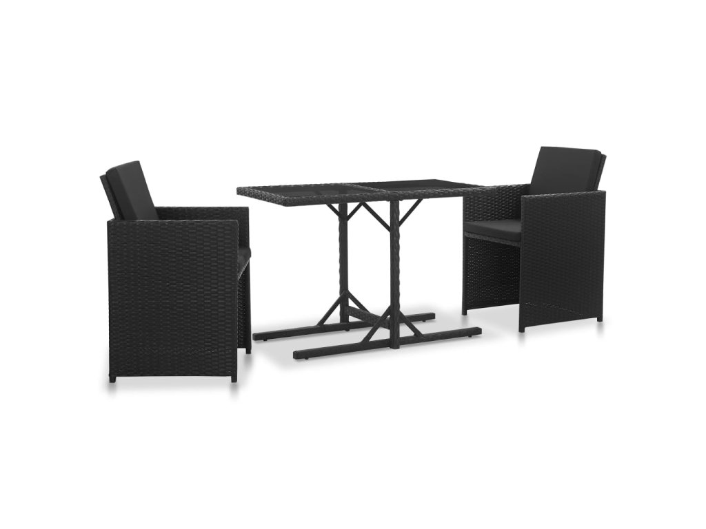 vidaXL 3-dielna vonkajšia jedálenská súprava+podložky,polyratan,čierna