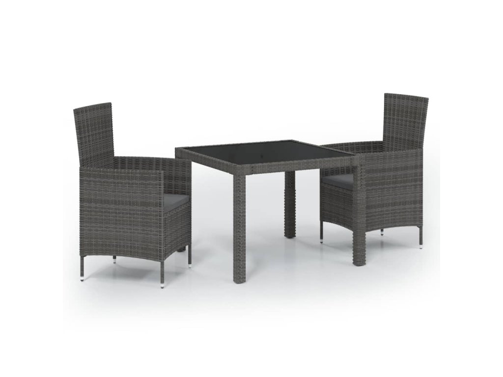 vidaXL 3-dielna vonkajšia jedálenská súprava s vankúšmi polyratan sivá