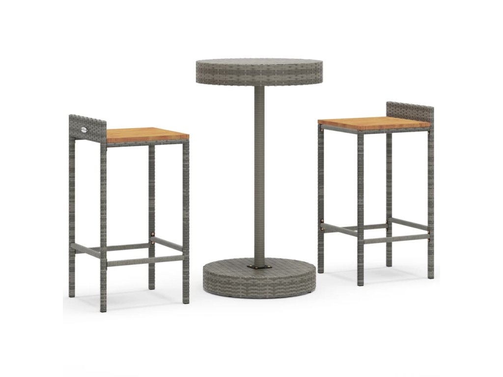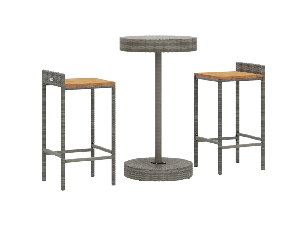 vidaXL 3-dielna záhr. barová súprava sivá polyratan a masívna akácia