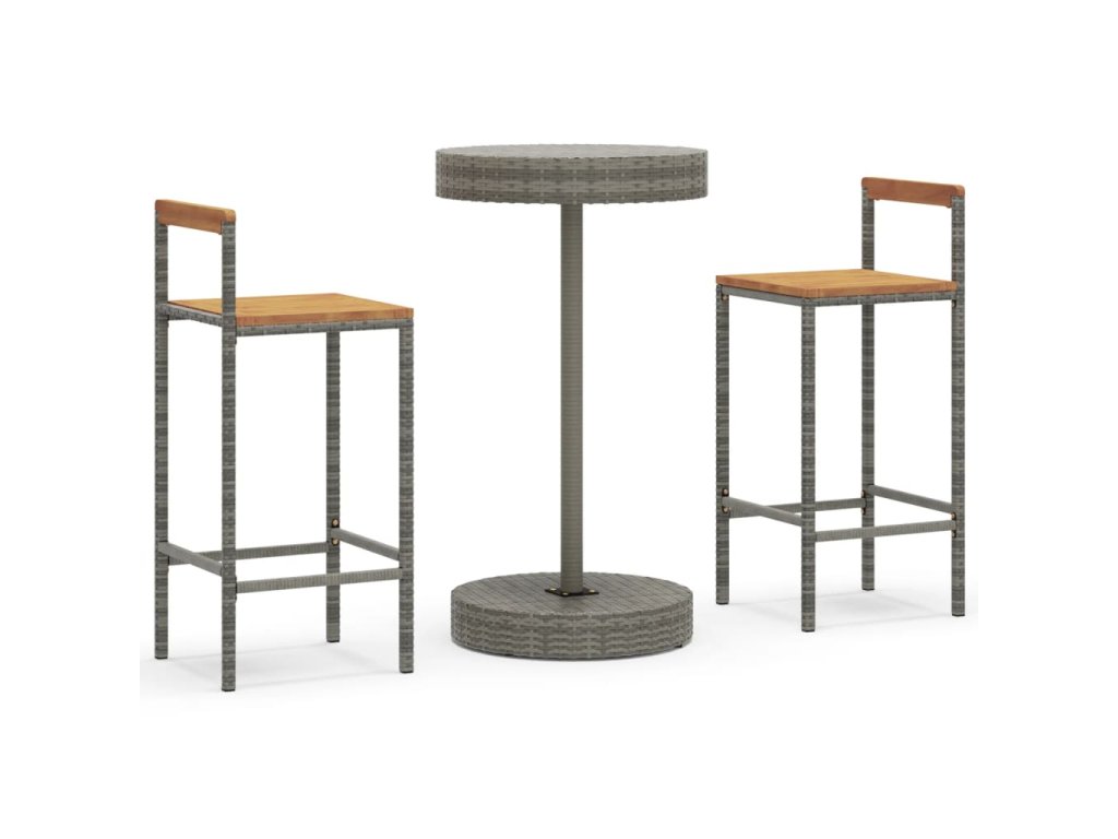vidaXL 3-dielna záhr. barová súprava sivá polyratan a masívna akácia