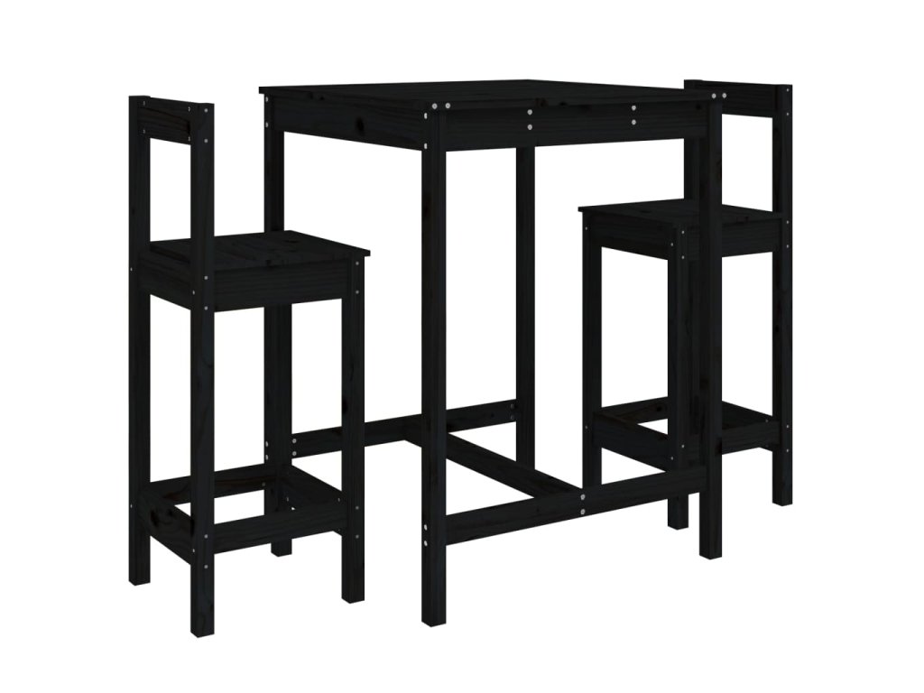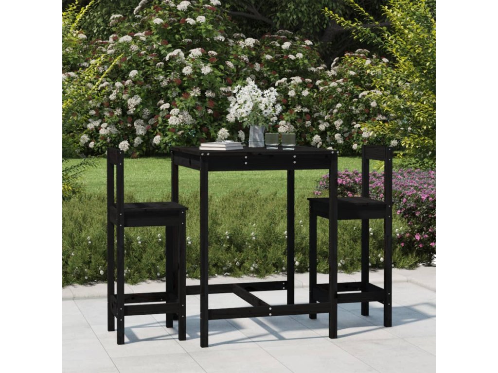 vidaXL 3-dielna záhradná barová súprava čierna borovicový masív