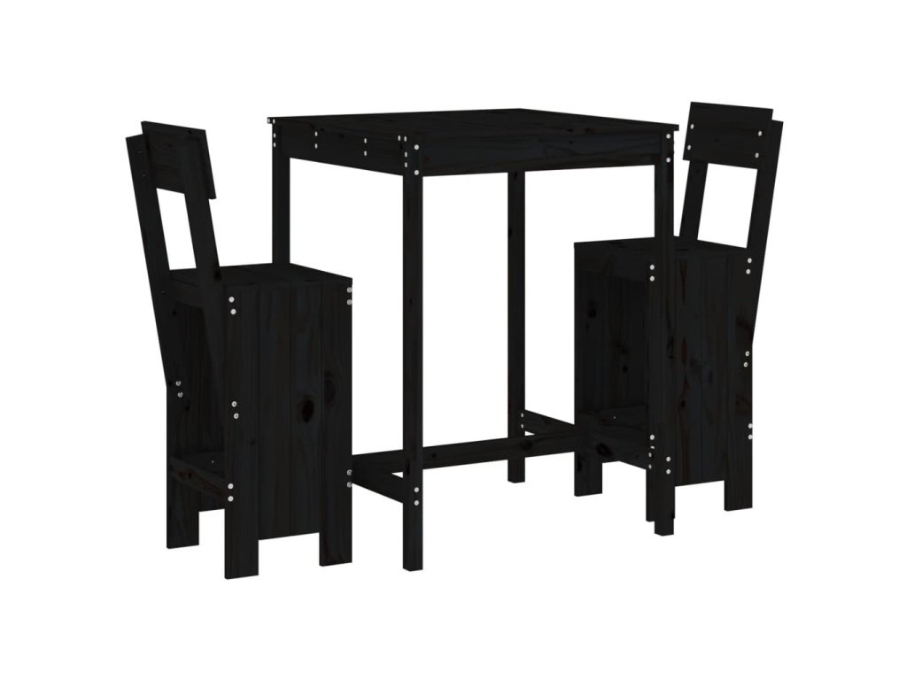 vidaXL 3-dielna záhradná barová súprava čierna borovicový masív
