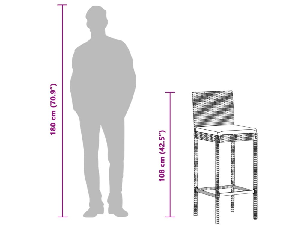 - Odolný materiál: PE ratan, tiež známy ako polyratan, je silný syntetický materiál nenáročný na údržbu, ktorý vyzerá ako prírodný ratan. Je ľahký, dobre sa čistí a bežne sa používa na vonkajší nábytok vďaka svojej trvácnosti a odolnosti voči poveternostným vplyvom. Tieto barové stoličky sú vyrobené z ľahkého ratanu PE, sú stabilné a ľahko sa prenášajú.