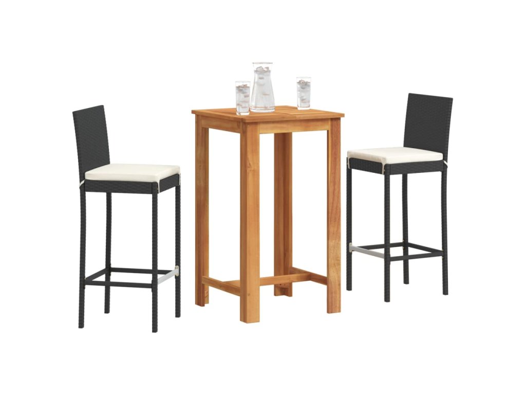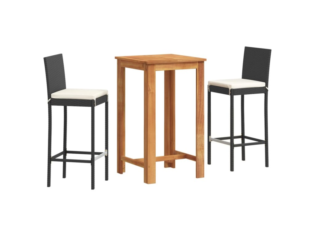 vidaXL 3-dielna záhradná barová súprava čierna polyratan akácia