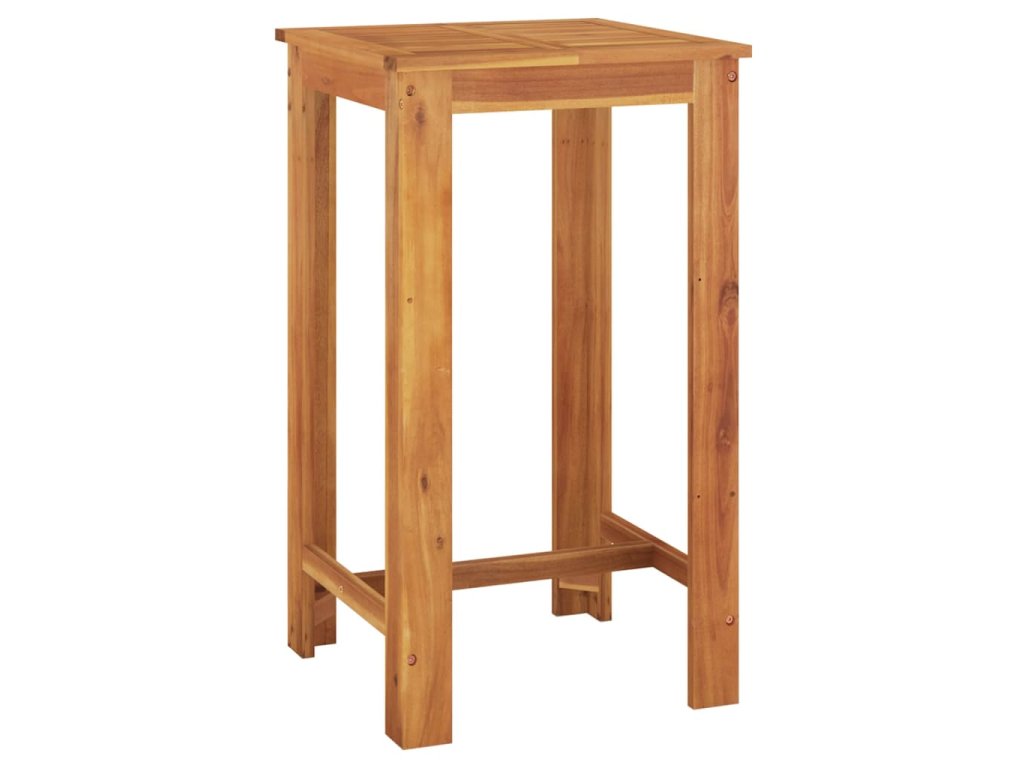 - Stolová doska z akáciového masívu: Akáciový masív je krásny prírodný materiál. Akáciové drevo je drevo tropického listnatého stromu, ktoré je husté, pevné a trvácne. Tento barový stôl je vyrobený z masívneho akáciového dreva, a je pevný a stabilný. Môžete si naň položiť občerstvenie, nápoje či vaše obľúbené dekorácie.
