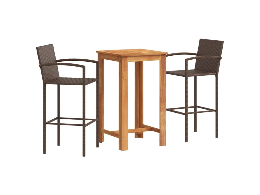 vidaXL 3-dielna záhradná barová súprava hnedá polyratan masívna akácia