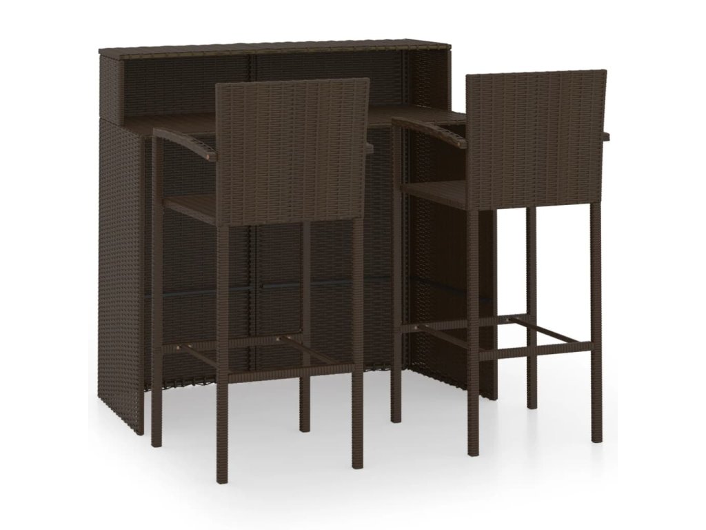 Barová súprava je vyrobená z PE ratanu, ktorý je vodovzdorný a odolný voči poveternostným vplyvom. Dá sa ľahko očistiť, je trvácna a vhodná aj na každodenné používanie. Oceľový rám s práškovou povrchovou úpravou dodáva stolu a stoličkám potrebnú stabilitu a odolnosť. Vďaka ľahkej konštrukcii sa dajú položky bez námahy presúvať.