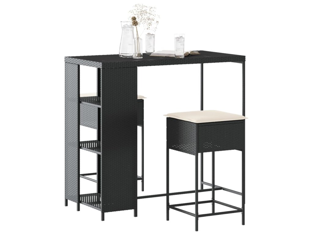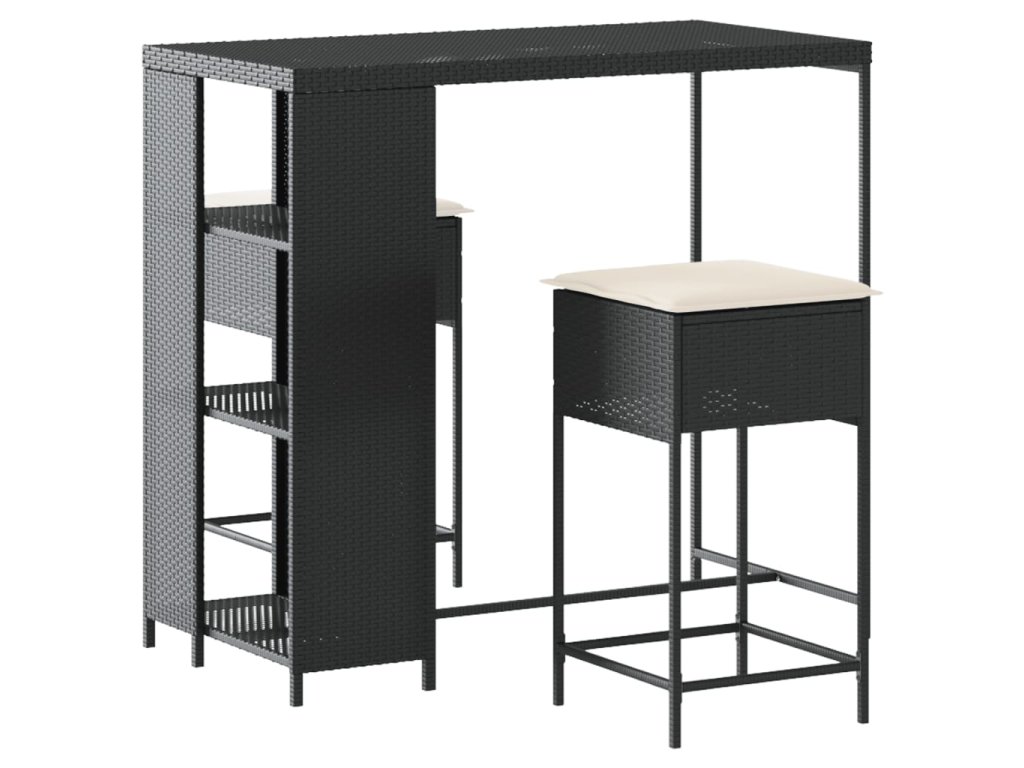 vidaXL 3-dielna záhradná barová súprava s vankúšmi čierna polyratan