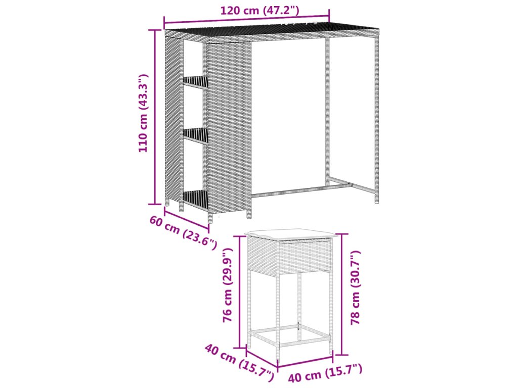 Táto trendový záhradná barová súprava, ktorá kombinuje štýl a funkčnosť, sa určite stane stredobodom vašej záhrady, terasy a akéhokoľvek iného obytného priestoru.