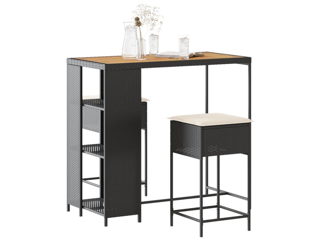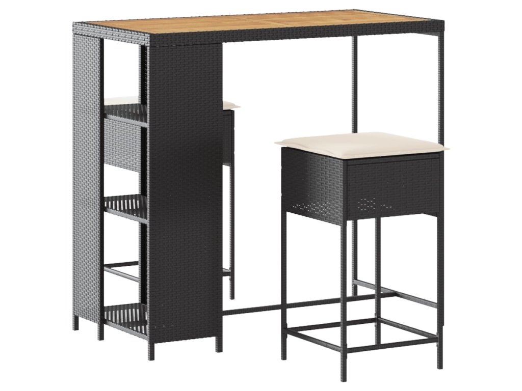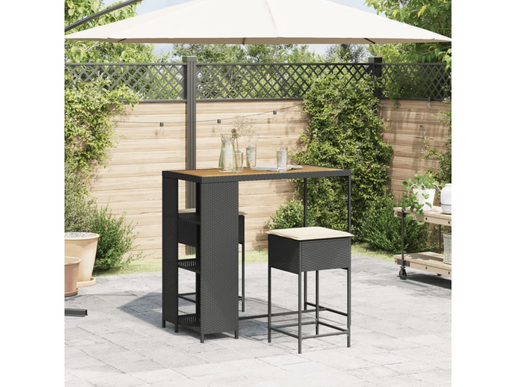 vidaXL 3-dielna záhradná barová súprava s vankúšmi čierna polyratan