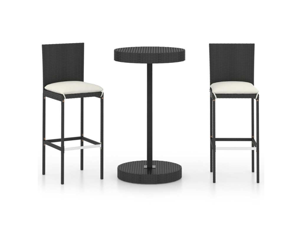 vidaXL 3-dielna záhradná barová súprava s vankúšmi čierna polyratanová