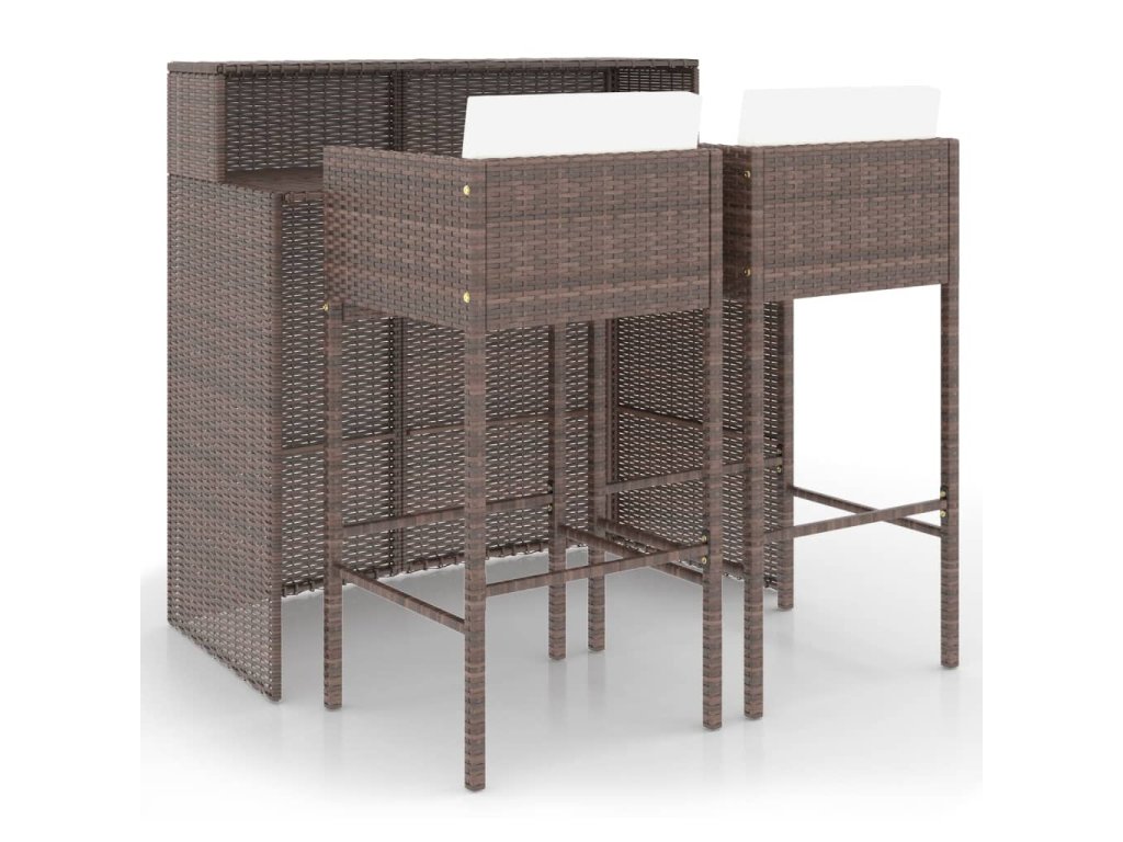 vidaXL 3-dielna záhradná barová súprava s vankúšmi polyratanová hnedá
