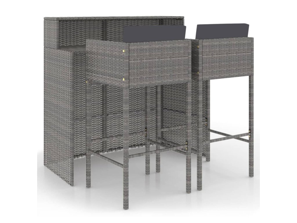 vidaXL 3-dielna záhradná barová súprava s vankúšmi polyratanová sivá