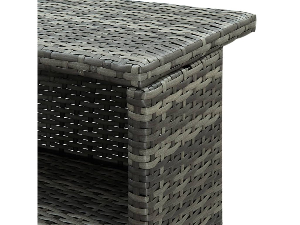 Barová súprava je vyrobená z PE ratanu, ktorý je vodovzdorný a odolný voči poveternostným vplyvom. Dá sa ľahko očistiť, je trvácna a vhodná aj na každodenné používanie. Oceľový rám s práškovou povrchovou úpravou dodáva stolu a stoličkám potrebnú stabilitu a odolnosť. 2-poschodová horná časť vytvára dodatočný úložný priestor pre predmety, ktoré chcete mať na dosah ruky. Opierka nôh a vankúše tiež zvyšujú pohodlie počas sedenia. Vďaka ľahkej konštrukcii sa dajú jednotlivé položky bez námahy presúvať.