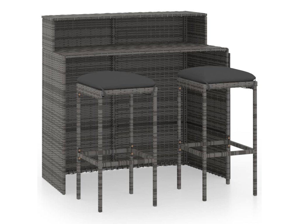 vidaXL 3-dielna záhradná barová súprava s vankúšmi sivá