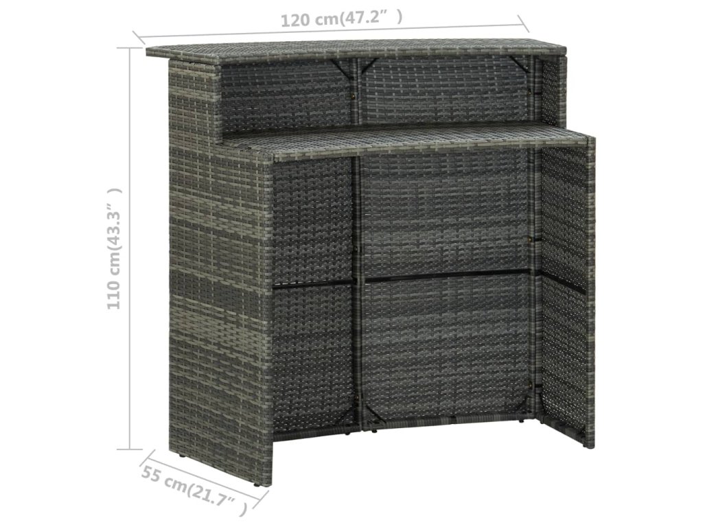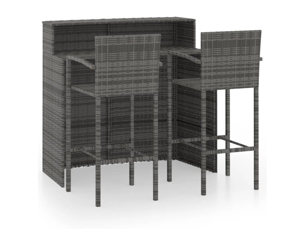 Barová súprava je vyrobená z PE ratanu, ktorý je vodovzdorný a odolný voči poveternostným vplyvom. Dá sa ľahko očistiť, je trvácna a vhodná aj na každodenné používanie. Oceľový rám s práškovou povrchovou úpravou dodáva stolu a stoličkám potrebnú stabilitu a odolnosť. Vďaka ľahkej konštrukcii sa dajú položky bez námahy presúvať.