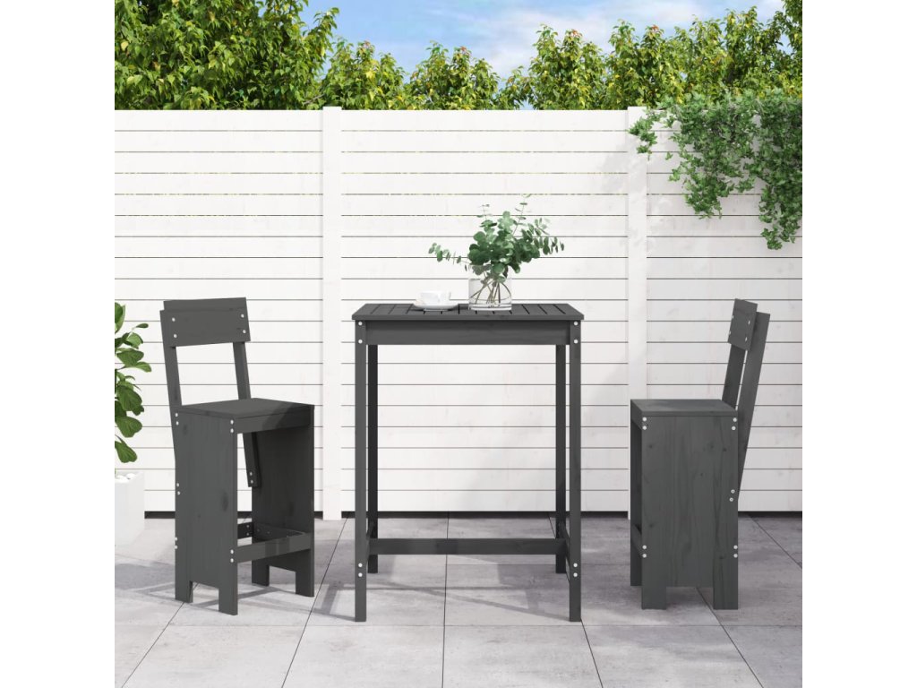 vidaXL 3-dielna záhradná barová súprava sivá borovicový masív
