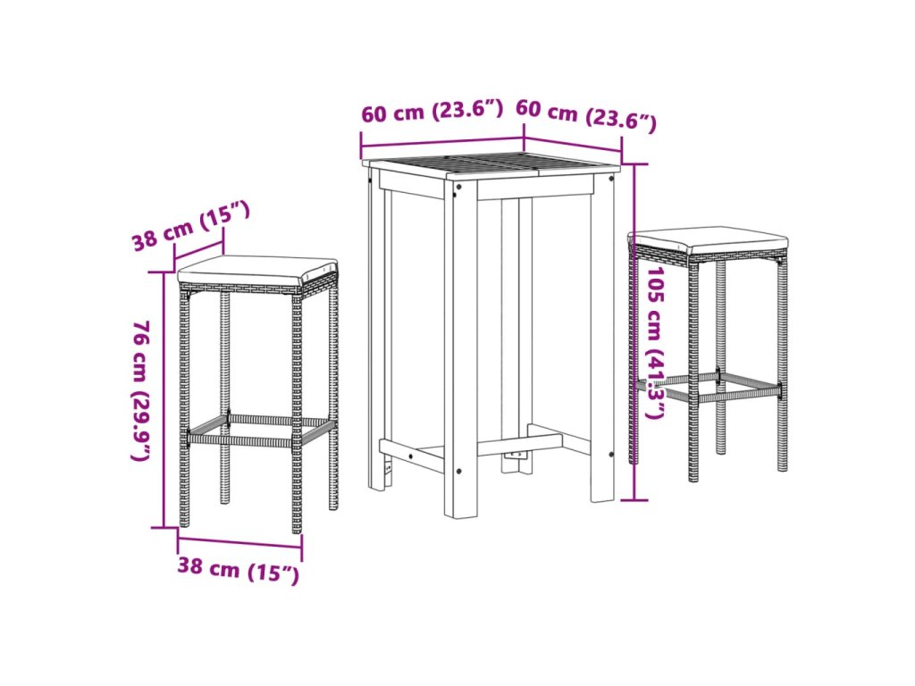 Táto záhradná barová súprava s elegantným a moderným dizajnom vám poskytne ideálne miesto na stolovanie a oddych v záhrade.