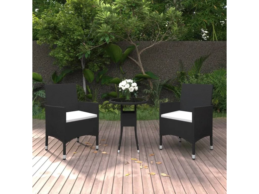 vidaXL 3-dielna záhradná bistro súprava, polyratan+tvrdené sklo čierna