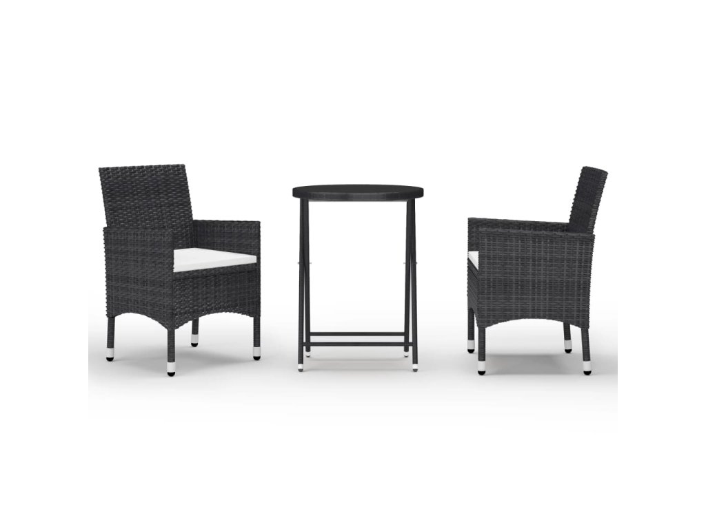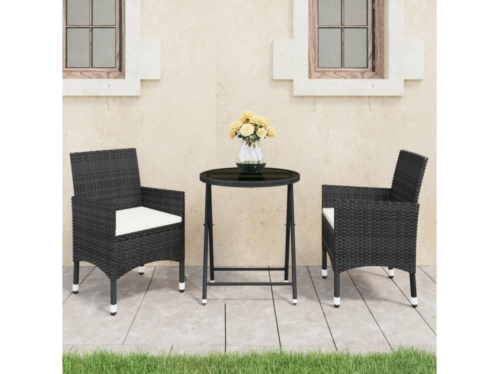 vidaXL 3-dielna záhradná bistro súprava polyratan a tvrdené sklo čierna