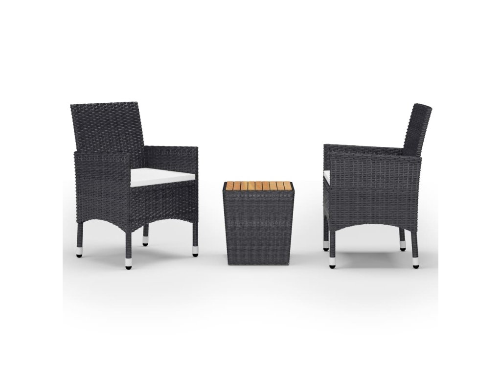 vidaXL 3-dielna záhradná bistro súprava polyratan+drevený masív čierna