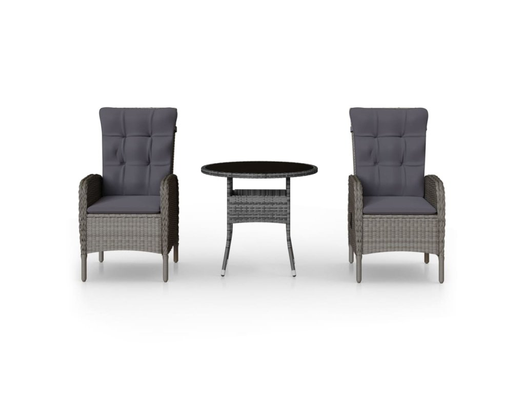 vidaXL 3-dielna záhradná bistro súprava polyratan sivá