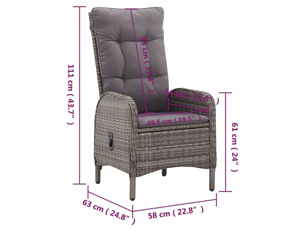 - Pohodlné stoličky: Záhradné polohovateľné kreslo navrhnuté so zakriveným operadlom a lakťovou opierkou má ergonomickejší tvar pre maximálne pohodlie. Vankúše sú súčasťou balenia pre väčšiu podporu a poťah na zips je odnímateľný pre ľahké pranie.