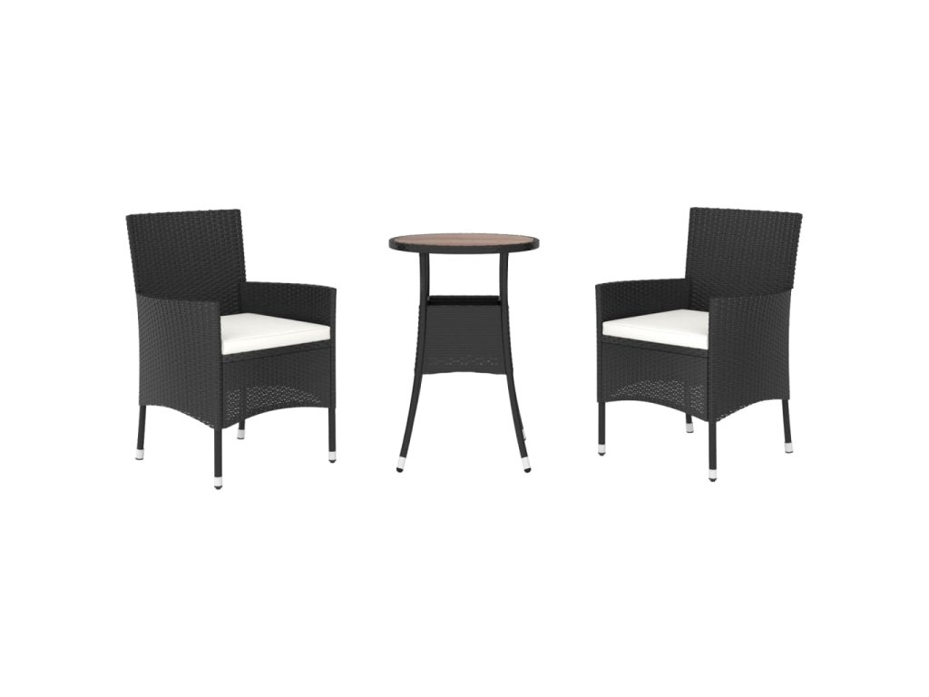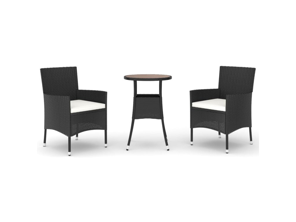 vidaXL 3-dielna záhradná bistro súprava s vankúšmi čierna polyratan