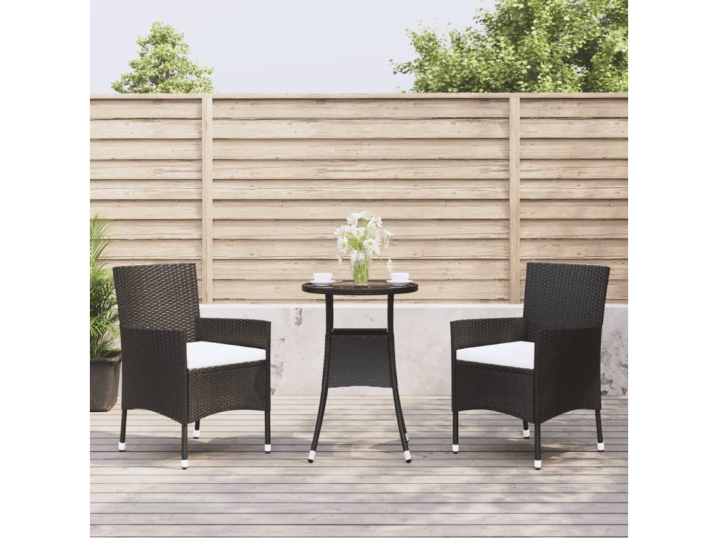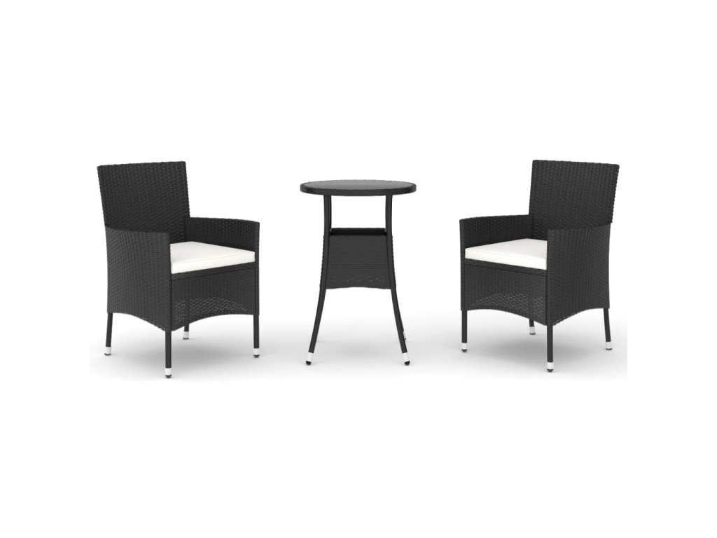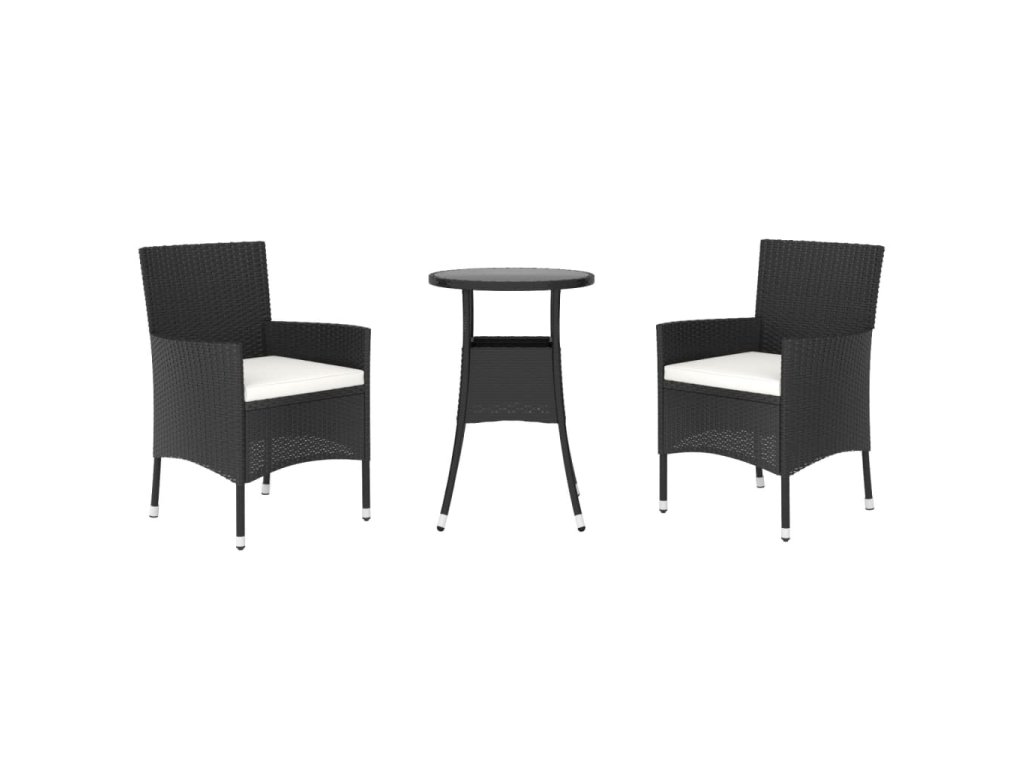 vidaXL 3-dielna záhradná bistro súprava s vankúšmi čierna polyratan