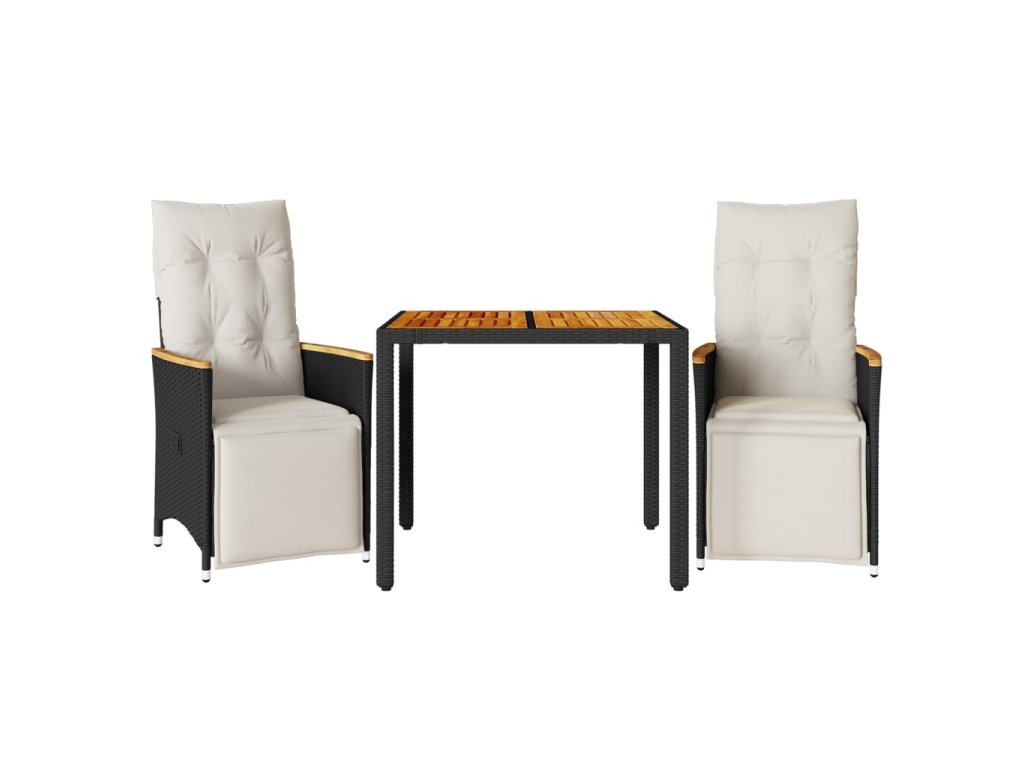 vidaXL 3-dielna záhradná bistro súprava s vankúšmi čierna polyratan