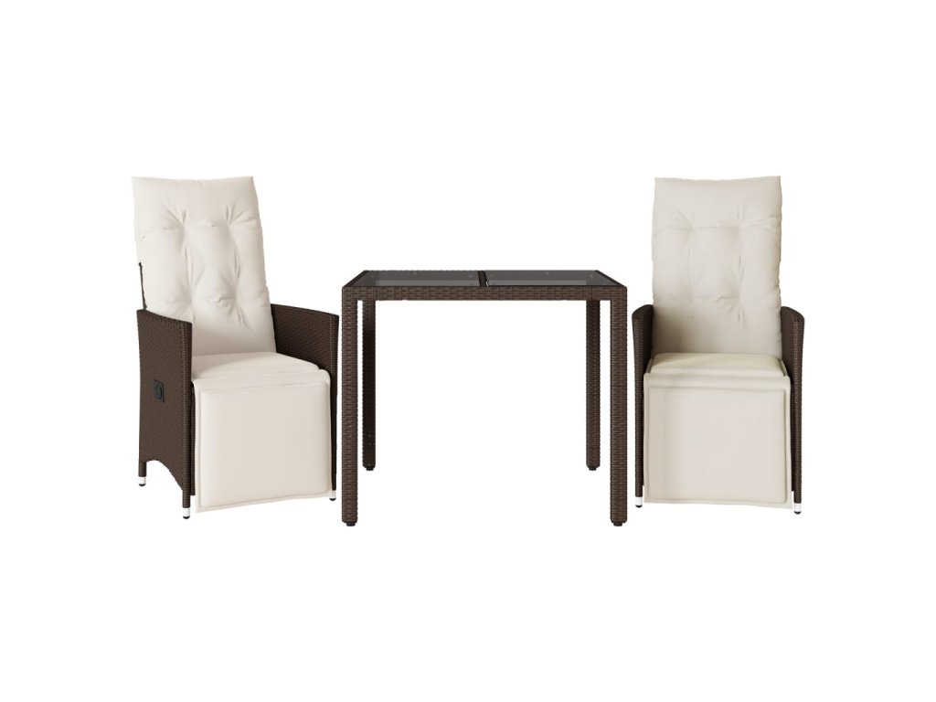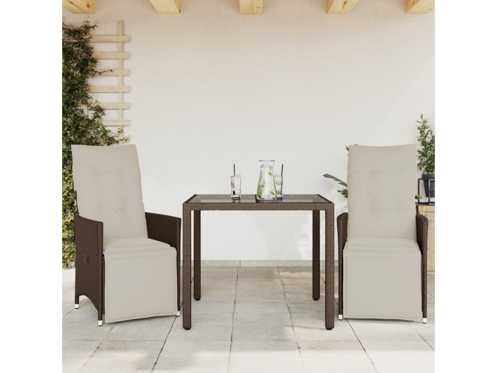 vidaXL 3-dielna záhradná bistro súprava s vankúšmi hnedá polyratanová