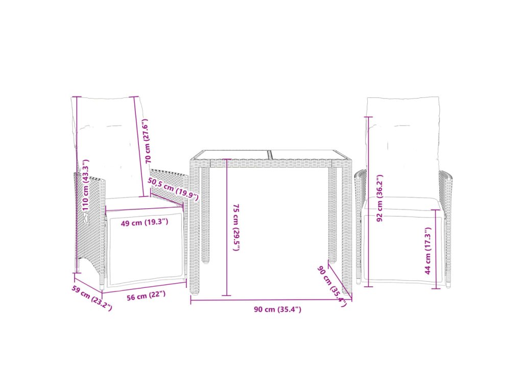 - Rozmery v polohe na sedenie: 56 x 59 x 92 cm (Š x H x V)
