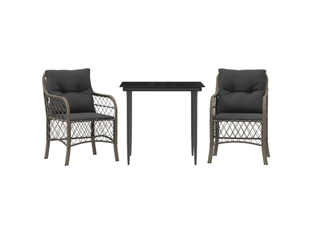 vidaXL 3-dielna záhradná bistro súprava s vankúšmi sivá polyratan