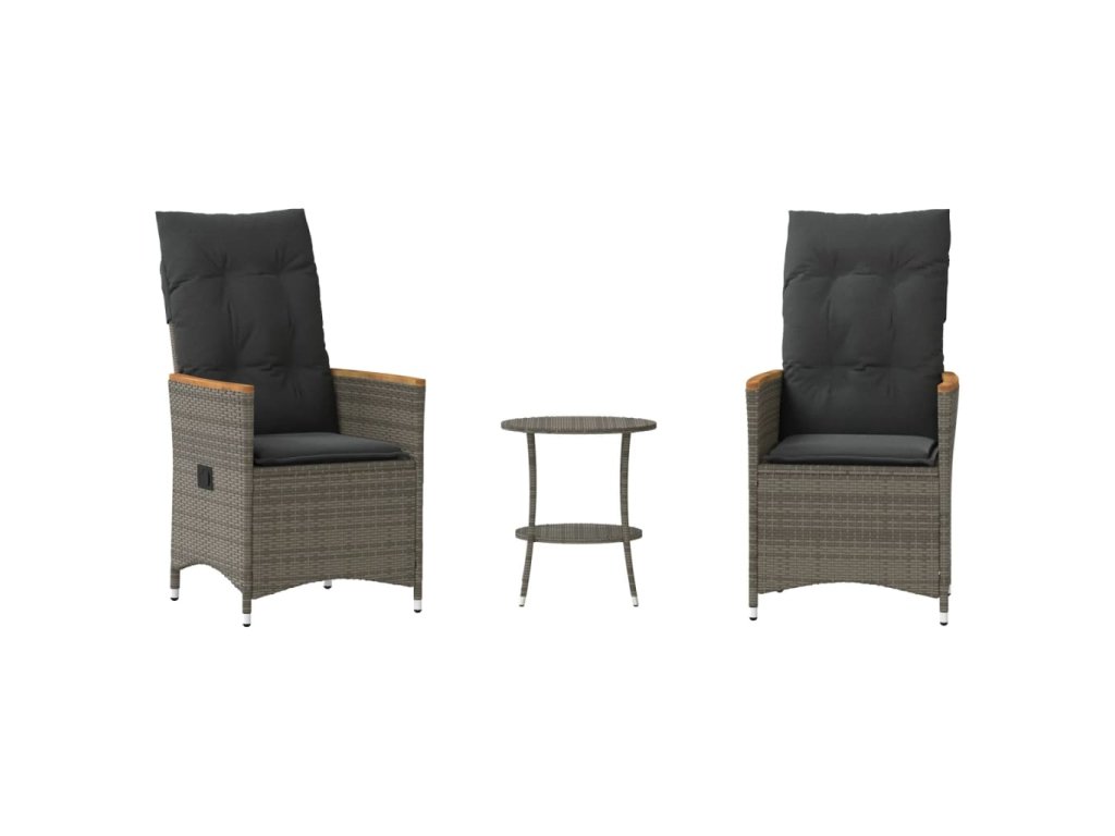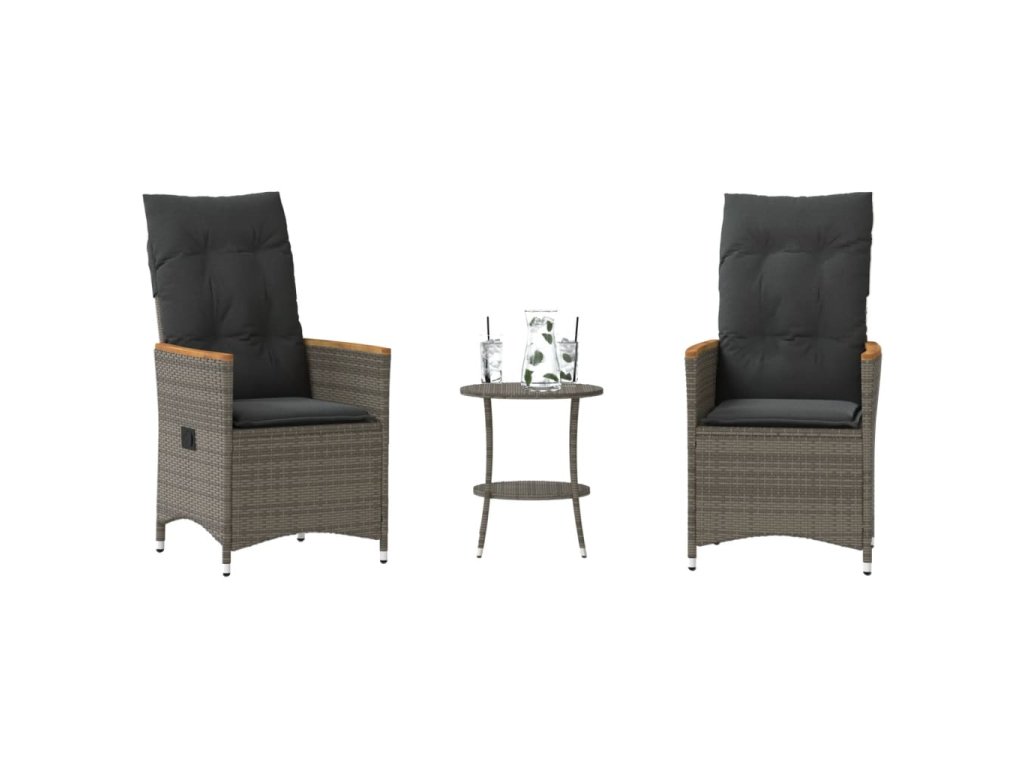 vidaXL 3-dielna záhradná bistro súprava s vankúšmi sivá polyratan
