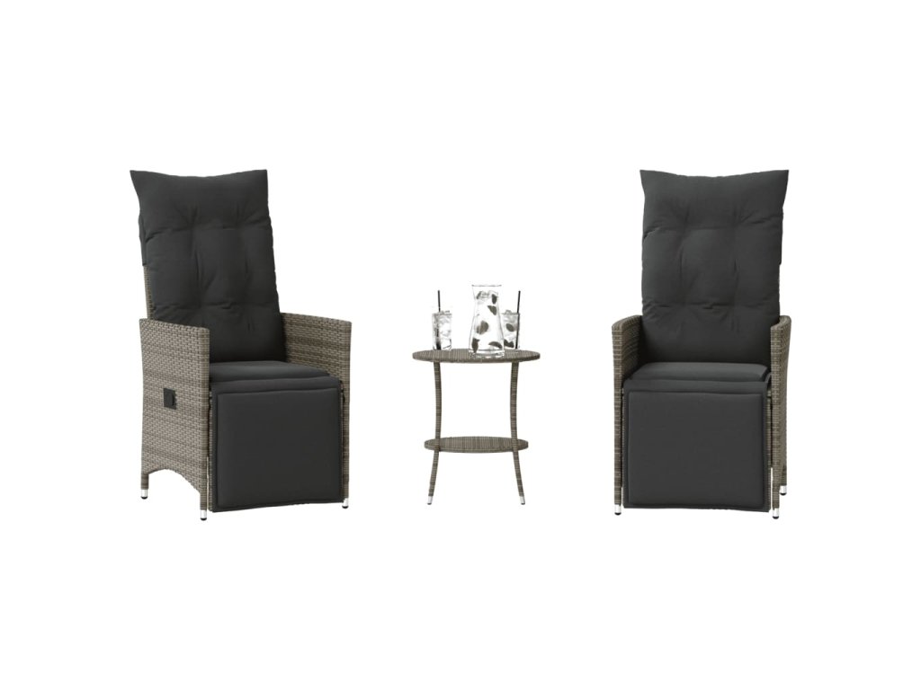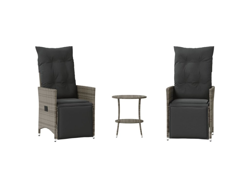vidaXL 3-dielna záhradná bistro súprava s vankúšmi sivá polyratan