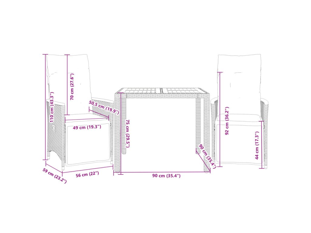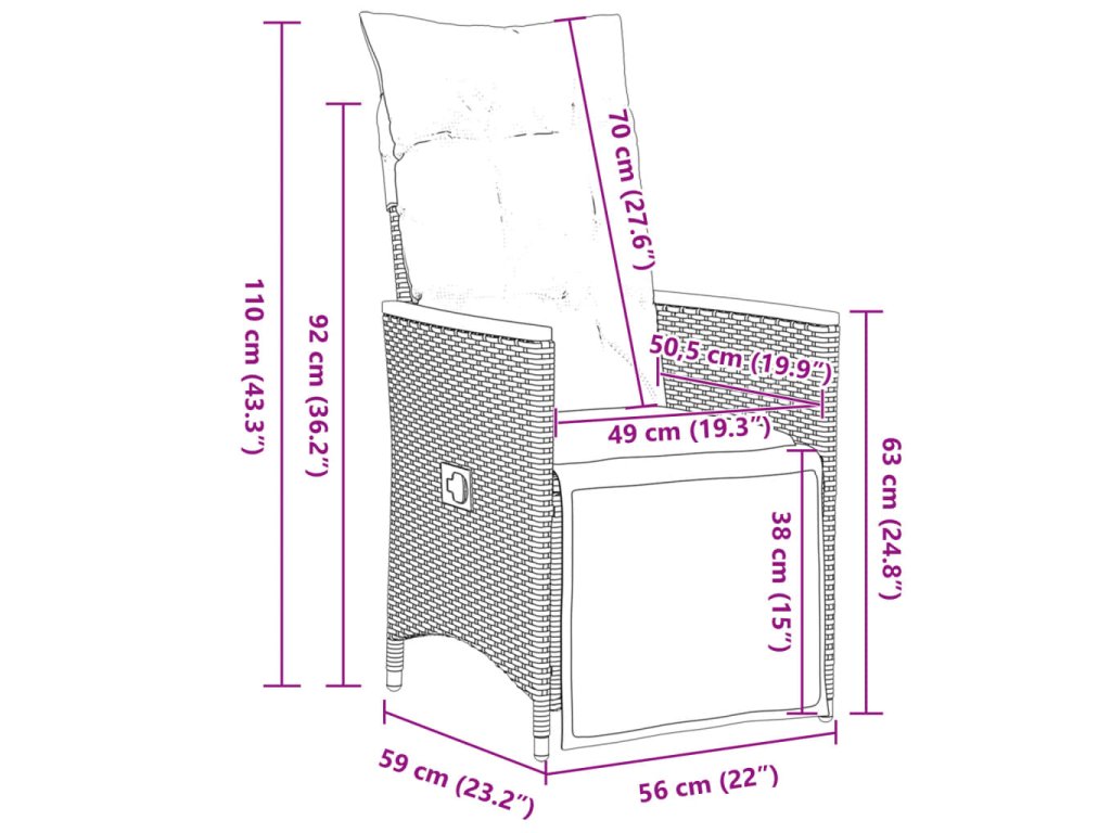 - Rozmery v polohe na sedenie: 56 x 59 x 92 cm (Š x H x V)