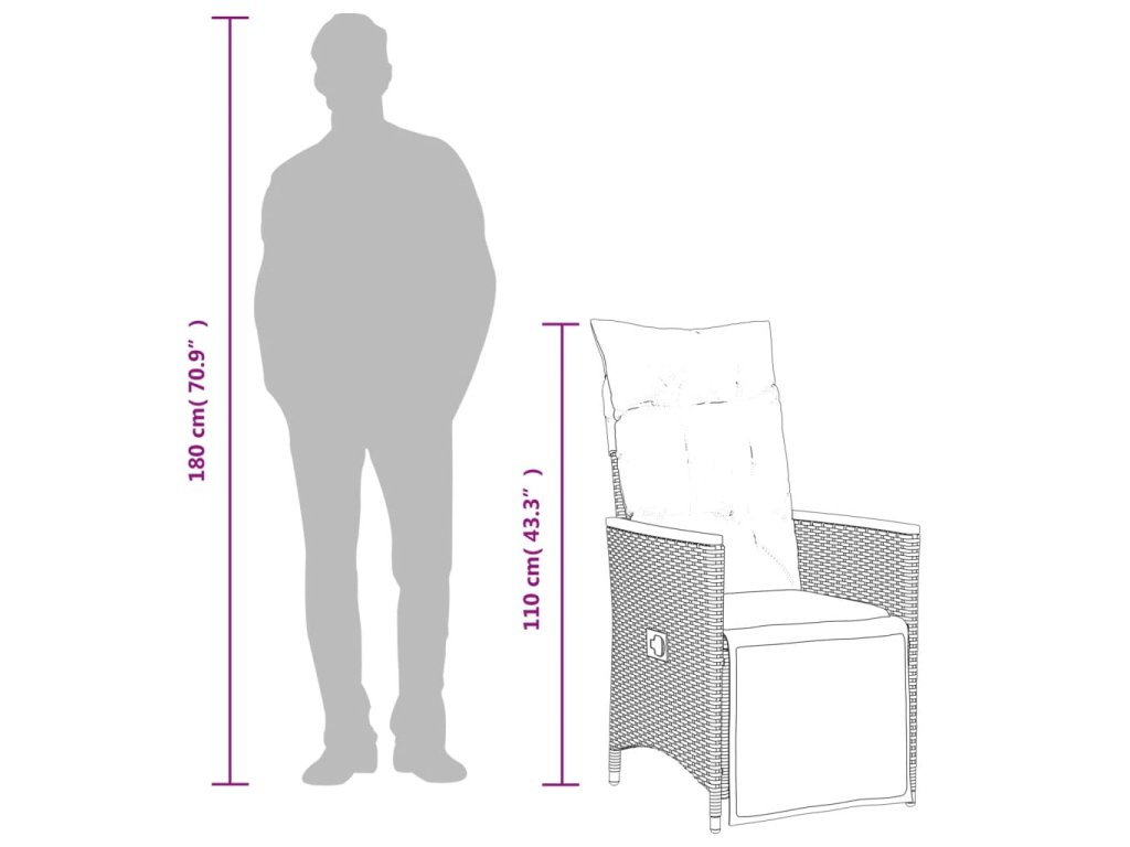 - Materiál: PE ratan, oceľ, masívne akáciové drevo s olejovým náterom