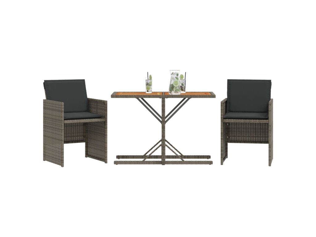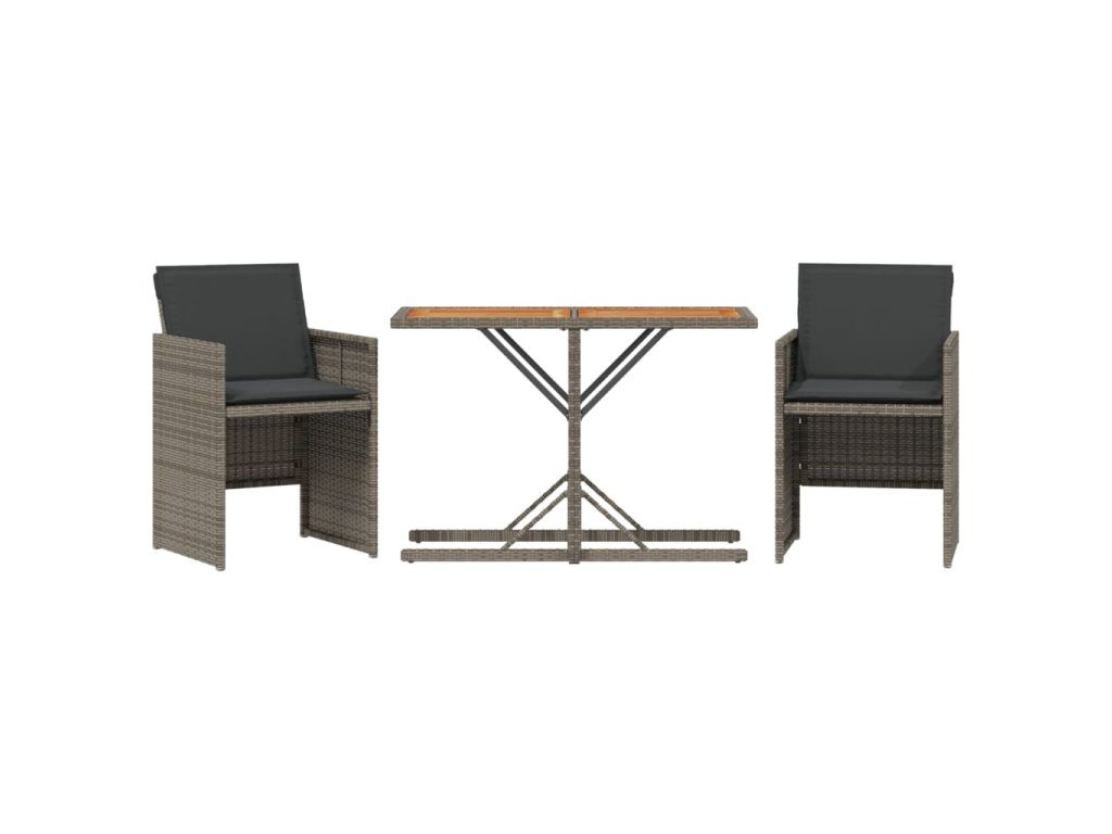 vidaXL 3-dielna záhradná bistro súprava s vankúšmi sivá polyratan