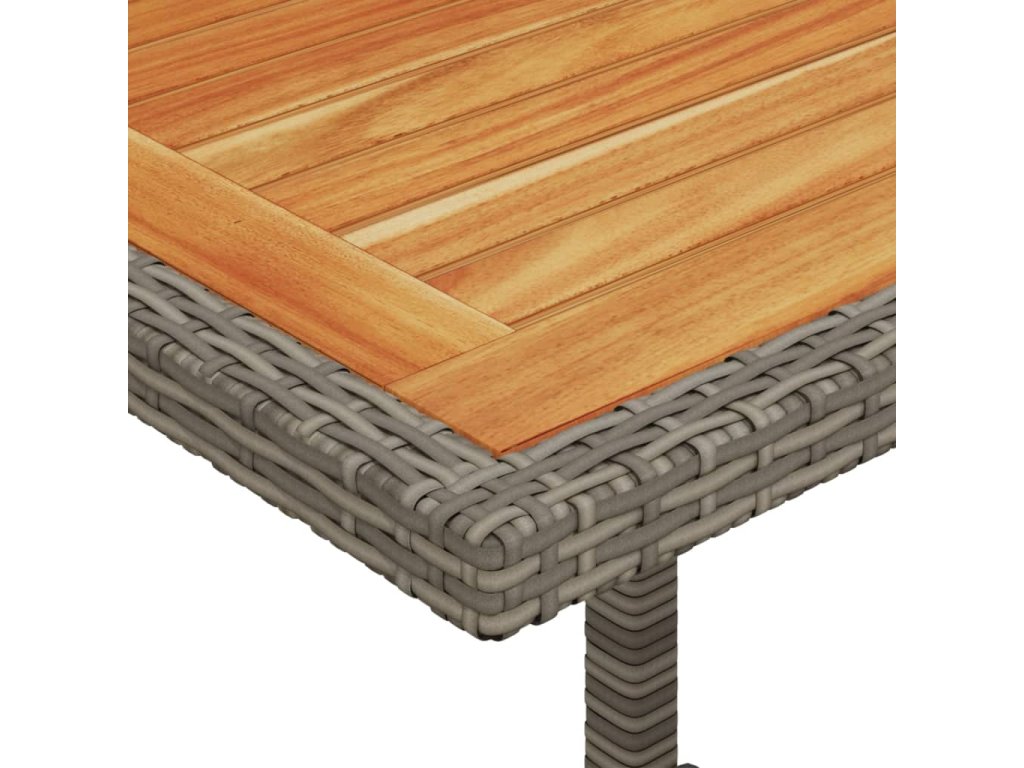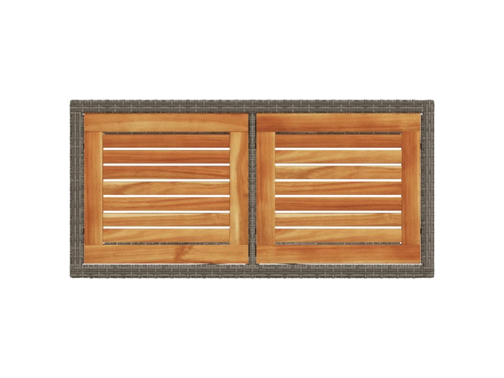- Materiál: PE ratan, práškovaná oceľ, masívne akáciové drevo s olejovým náterom