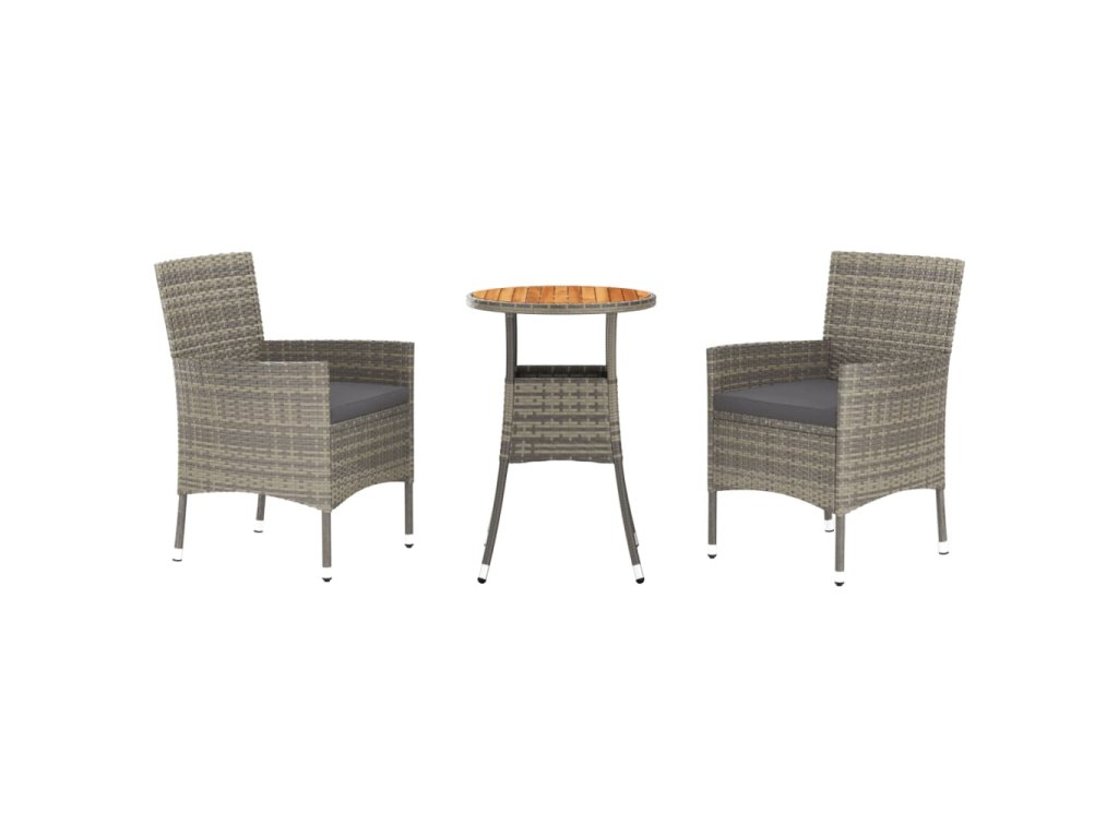 vidaXL 3-dielna záhradná bistro súprava s vankúšmi sivá polyratan