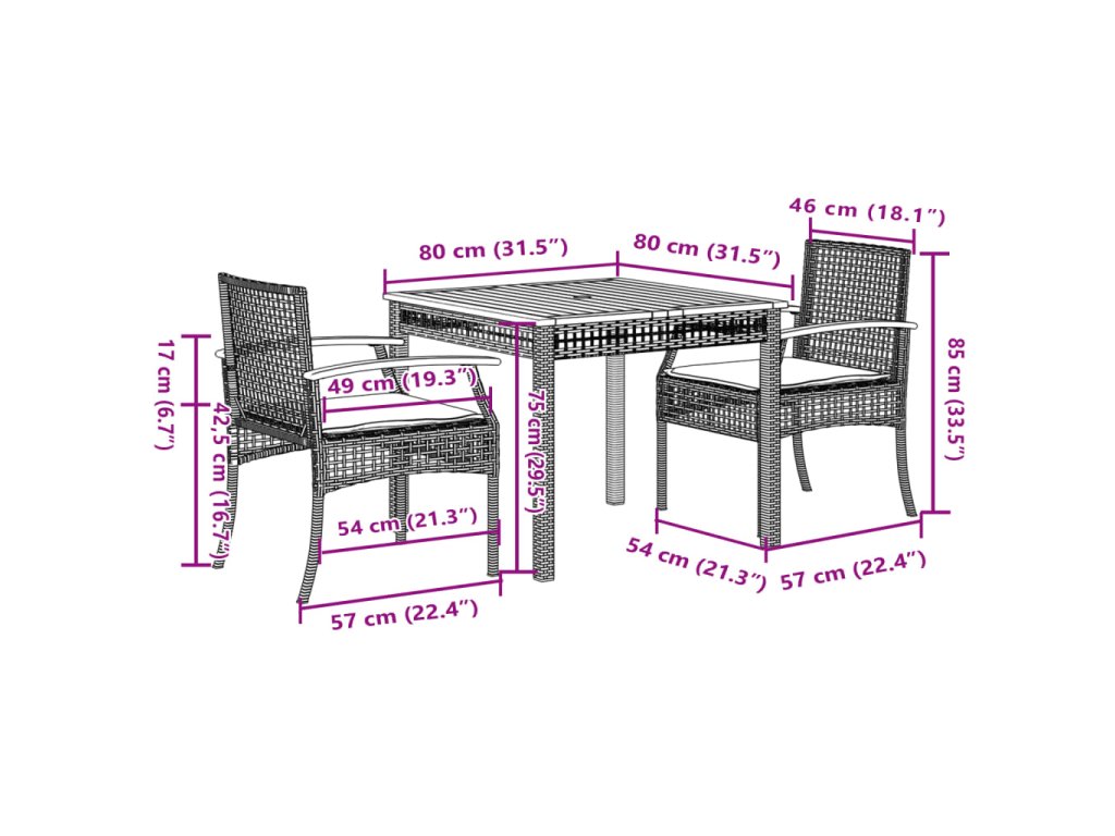 - Rozmery: 80 x 80 x 75 cm (D x Š x V)