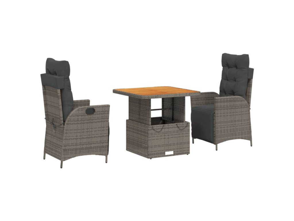 vidaXL 3-dielna záhradná jedálenská sada s podložkami sivá polyratan