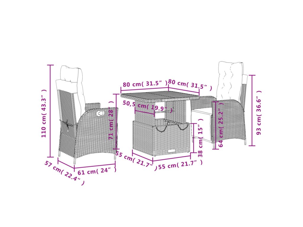 - Rozmery stola: 80 x 80 x 40/71 cm (D x Š x V)