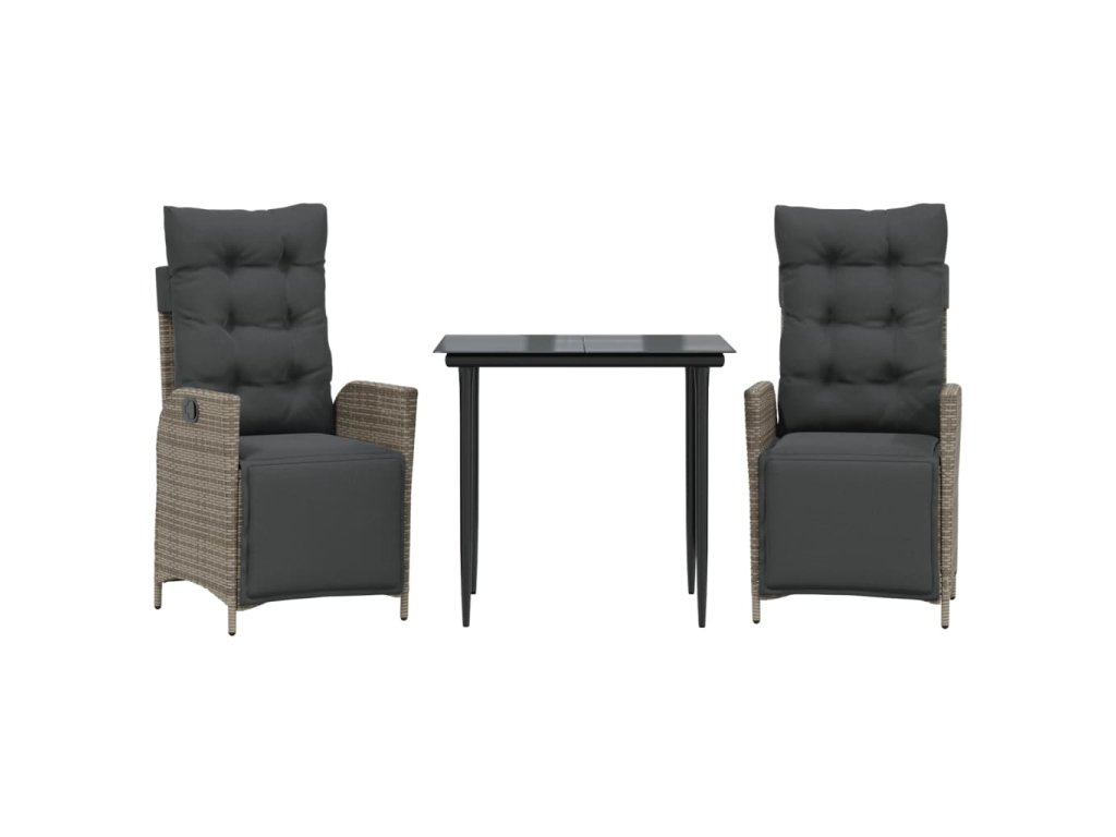 vidaXL 3-dielna záhradná jedálenská sada s podložkami sivá polyratan