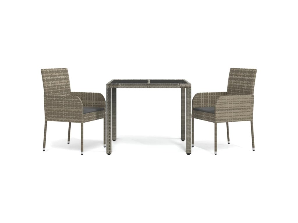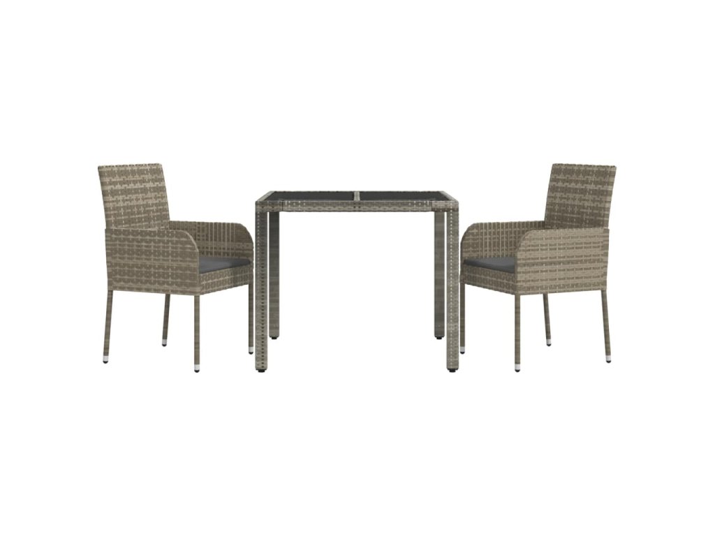 vidaXL 3-dielna záhradná jedálenská sada s podložkami sivá polyratan